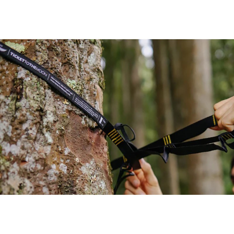 Super-strong lines for suspending hammocks. The daisy chain allows quick adjustment to the required length. The width of the lines is gentle on tree bark.